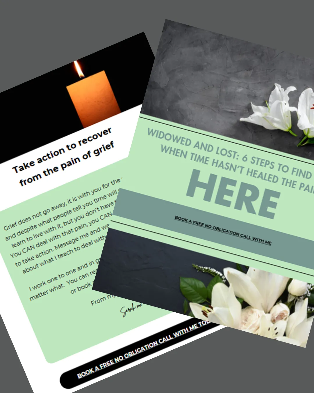 I’m Sarah, a Certified Grief Recovery Specialist and widow who knows the loneliness of losing your person. After my husband’s sudden passing, I learned how to carry love and loss side by side — and now I help other widowed women do the same, finding hope, meaning, and themselves again.